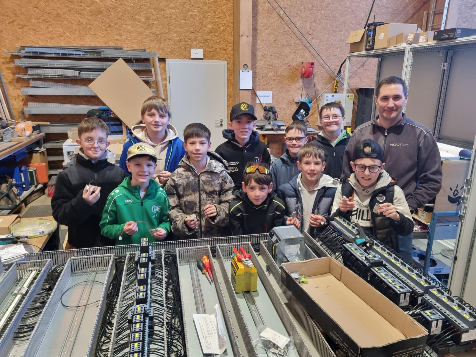 Cette visite s’inscrivait dans le cadre du projet « Platz den Kindern », auquel nous avons déjà participé pour la troisième fois. L’objectif de cette initiative est de permettre aux jeunes de découvrir tôt différents domaines professionnels. Chez Nowitec, les enfants ont ainsi pu obtenir un aperçu passionnant des métiers techniques et découvrir concrètement le travail sur le terrain.